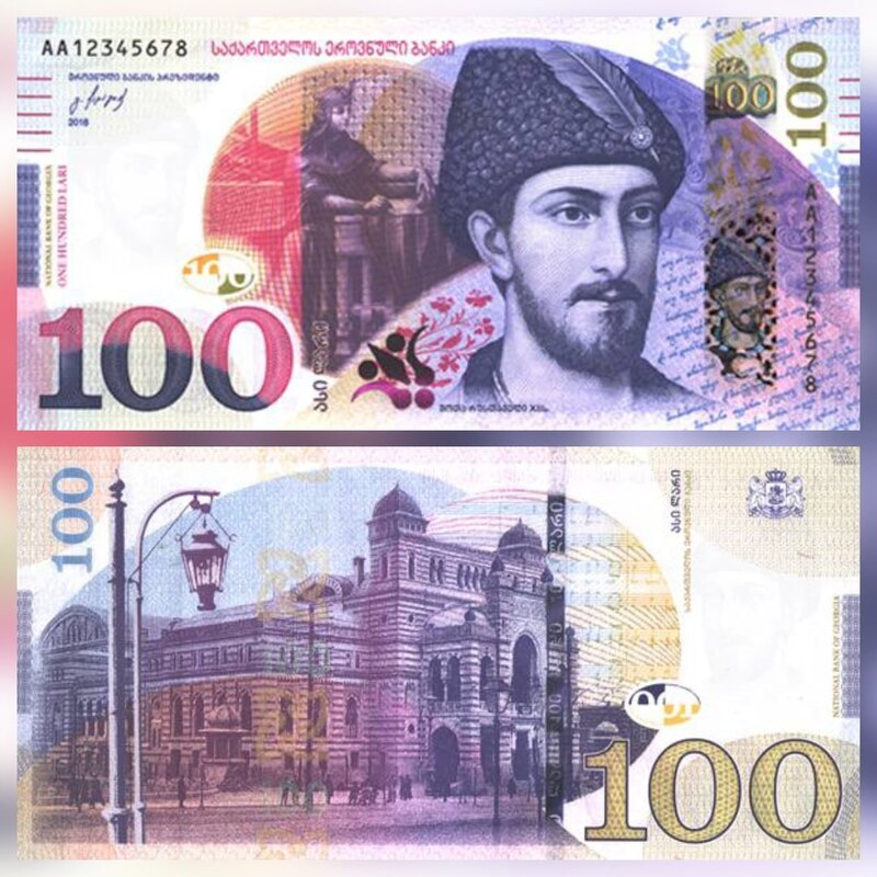 1️⃣0️⃣0️⃣ лари. На лицевой стороне – портрет поэта Руставели.