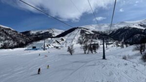 Фактически курорт делится на две части: трассы Кохта+Митарби и Дидвели. Они не соединяются между собой, то есть, чтобы покататься везде, придется использовать транспорт и лучше заложить два дня. В чем различия: на Кохте и Митарби действующие черные трассы (таковых сейчас нет, например, в Гудаури), а на Дидвели, напротив, есть варианты синих и зеленых участков для новичков. Снежное покрытие в Бакуриани более ухоженное, чем, например, в начале января в Гудаури: видно, что ратраки исправно работают, хотя к концу дня трассы неизбежно обледеневают.