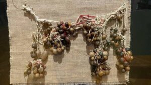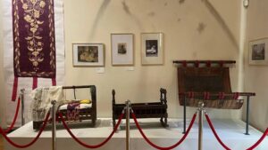 На выставке представлены артефакты XVIII–XX веков: колыбели и качели для младенцев, ритуальные амулеты и талисманы, украшения, предметы быта. Например, красные сети из шелковых нитей, которые подвешивали над колыбелью – считалось, что они обладают магической силой и способны поймать злых духов. В знатных семьях сети украшали серебром и золотом – они служили защитой для матери и ребенка от сглаза и болезней.