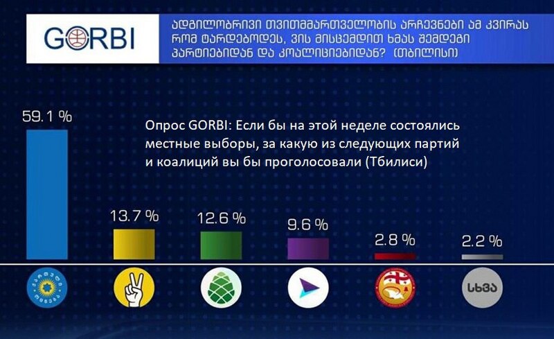 ▪️Рейтинги решивших принять участие крупных оппозиционных партий «Лело для Грузии» (основана бизнесменами Хазарадзе и Джапаридзе), а также «За Грузию» (экс-премьера Гахарии) оцениваются в 10-15% возможных голосов
