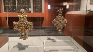 При этом отныне в стоимость билета входит посещение зала со старинными грузинскими иконами – и если вы там не были, то экспозиция стоит того, чтобы ее увидеть хотя бы один раз. А впечатление она производит очень сильное: в зале на минус первом этаже собраны церковная утварь и самые драгоценные старинные грузинские иконы. В том числе – Анчийский Спас, который прежде хранился в тбилисской церкви Анчисхати. Говорят, иногда перед ним в музее можно увидеть молящихся людей. Сама икона датирована VI-VII веками, позже была покрыта кованым серебряным окладом. Или икона из монастыря Хахули Х века – до нас дошел только лик и руки Богородицы, но это самый крупный образец перегородчатой эмали в мире. Минанкари в зале довольно много – можно воочию убедиться в искусности мастеров, работавших десять веков назад. В общем, даже если вы не слишком интересуетесь средневековым религиозным искусством, впечатление гарантировано.