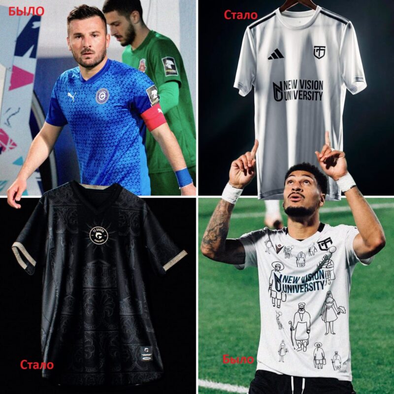 «Торпедо» Кутаиси три года играло в знаменитых майках с фрагментами картин Пиросмани от Macron, но в этом году решило сменить технического партнера – им стал Adidas, который сделал два комплекта – черный и белый – без принтов, с лишь едва заметными вертикальными полосками. Болельщики в соцсетях уже просят вернуть футболки с Пиросмани. Присоединяюсь к ним, это один из любимых моих комплектов, который сам ношу иногда с удовольствием.