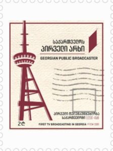 Первое телевещание — марка посвящена Общественному вещателю Грузии (Первому каналу). Это первый в стране телеканал. Изображена на марке тбилисская телебашня. Тираж — 25 тысяч. Цена — 2 лари.