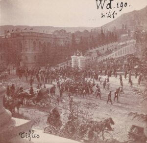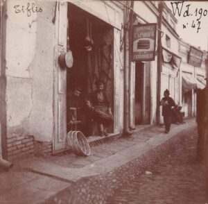 На этих снимках – Тифлис и его городские типажи рубежа веков. Многие объекты утрачены – например, собор Александра Невского (на фото его ограда) или уничтоженное мусульманское кладбище на месте современного Ботанического сада, и тем интереснее их рассматривать.