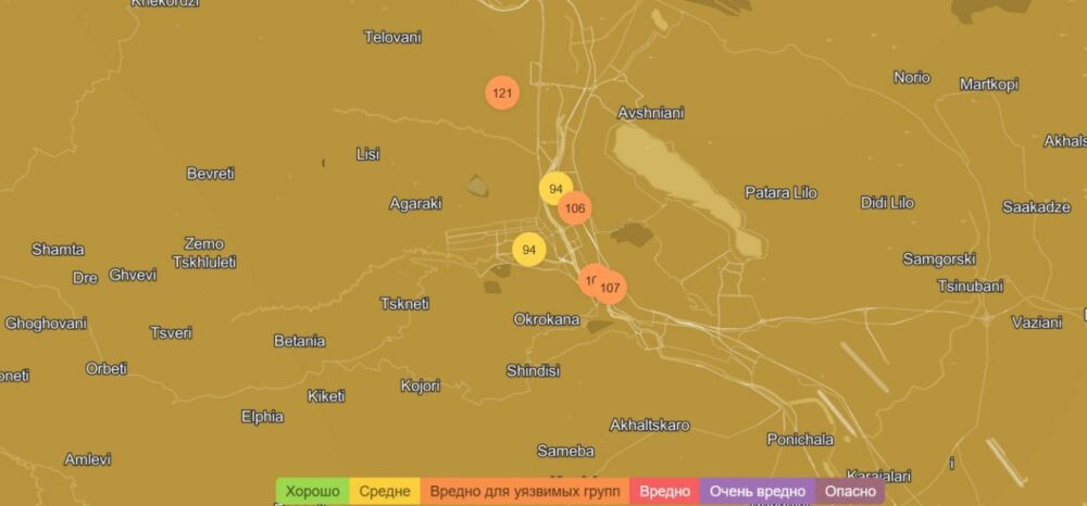 Согласно последним данным, воздух в Тбилиси, а также в Рустави и Ахалцихе сильно загрязнен твердыми частицами. Портал air.gov.ge сообщает, что качество воздуха во всех трех городах в настоящее время «очень плохое». Это продолжается с 6 ноября.