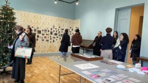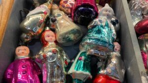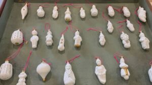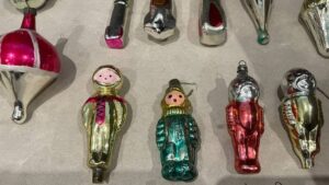 Авторы экспозиции – две художницы, родившиеся в Тбилиси, Руска Шашиашвили и Нона Отарашвили-Бехер. Они создали коллекцию новых елочных игрушек из белого фарфора с позолотой, обожженного при температуре 1260 градусов. Каждая – уникальна. Экспонаты, похожие на ледяные фигурки, — это слепки исторических игрушек, тех самых космонавтов и дирижаблей, так что получилась коллекция со смыслом и одновременно работа с историческим наследием, рассказывающая, как рождественские украшения превратились из средства передачи традиционных символов в инструмент советской идеологии.