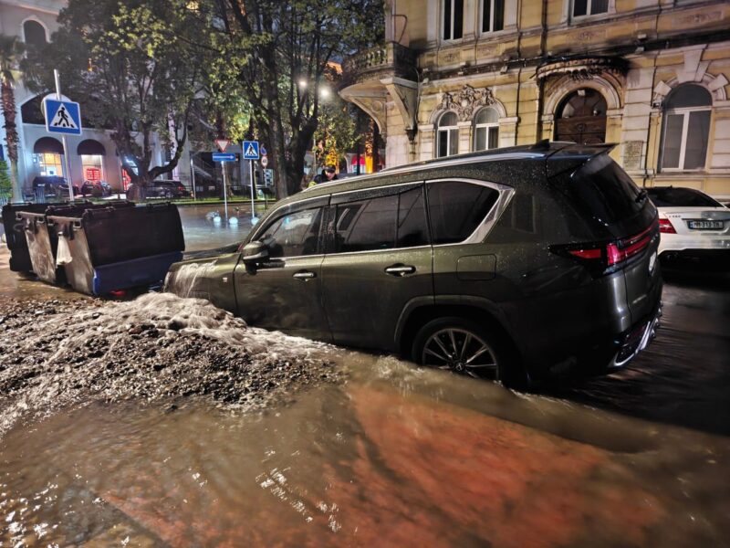 Из-за прорыва магистральной сети на нескольких улицах Руставели и 26 мая обвалился грунт. Там недавно уложили новый асфальт в рамках работ по замене брусчатки. На месте работают коммунальные службы.