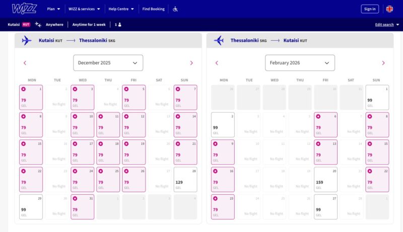 Сейчас действует акция: промо для всех желающих: полёты в ноябре-марте со скидкой 20%. Лоукостер летает из Кутаиси в 12 стран Европы по 24 направлениям и зачастую по очень выгодным ценам. Из минусов то, что в базовую стоимость входит только ручная кладь 40×30×20 см.