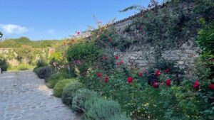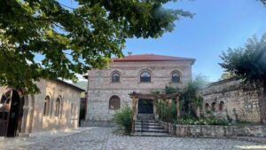 Недалеко от древнего комплекса Старая Шуамта среди густого леса с XVI века стоит монастырь, в который очень удобно заехать по пути из Тбилиси в Телави или обратно. Это Ахали Шуамта, или Новая Шуамта, известная своими фресками и родовой усыпальницей князей Чавчавадзе, красивый ухоженный монастырь, в теплое время года утопающий в розах. Обитель действующая -здесь довольно строгие правила, поэтому лучше быть одетым соответствующе.