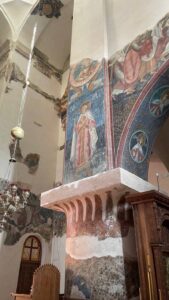 Главный храм комплекса — церковь Богородицы. Внутри фрески XVI–XVII веков, которые считаются главным художественным сокровищем монастыря. Росписи уцелели крупными фрагментами, они яркие и хорошо сохранившиеся. В орнаментах есть характерные для исламского искусства завитки – это влияние персидской оккупации.