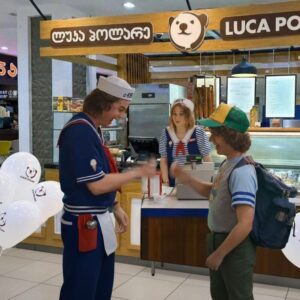 Так, герои сериала без ума от хинкали, работают в тбилисском полицейском участке и сети мороженого Luca Polare, ну и, конечно, посещают серные бани. Кстати, в Грузии тематические коллекции «Очень странных дел» появились в магазинах Pull & Bear и Aldo, а Kinder Joy можно найти фигурки с персонажами сериала.