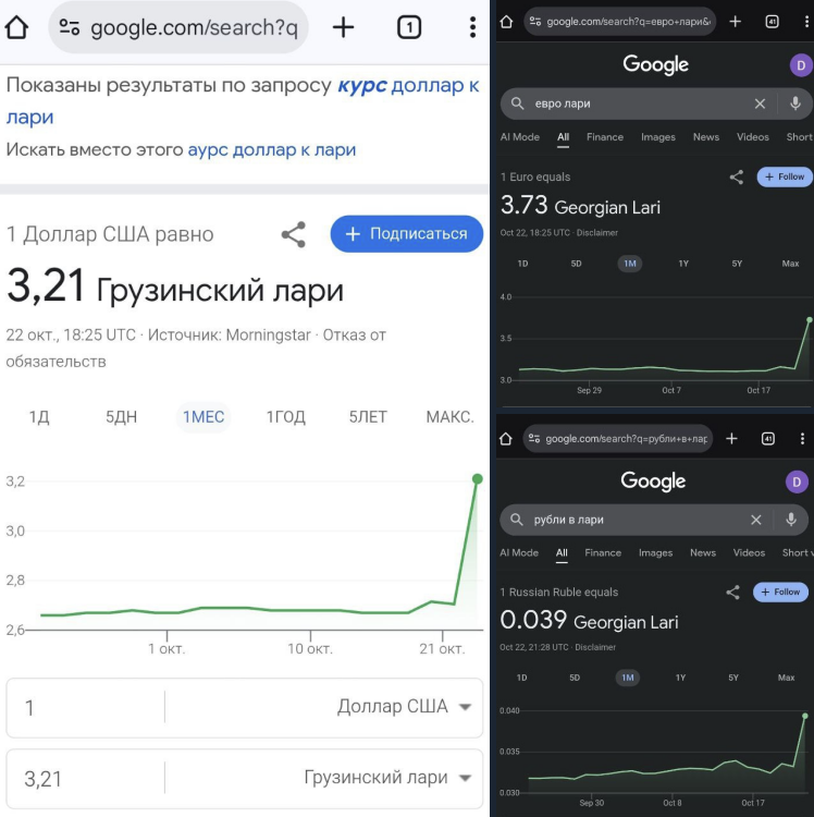 Напомню, что это не первый случай некорректной работы данного сервиса. Некоторое время назад многие валюты, в том числе и лари вообще пропадали из подобного виджета гугла.