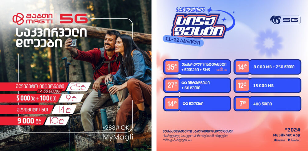 ▪️Magti для пользователей сделал следующие предложения. Безлимитный интернет на месяц – 25 лари (до 50Гб на высокой скорости). Различные тарифы на звонки и комбинированные акции. Активация по команде *288# или через приложение MyMagti.