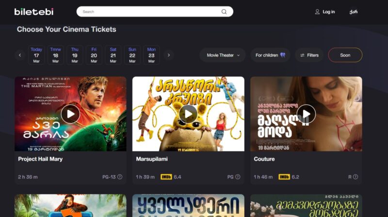 Один из двух крупнейших сайтов Грузии по продаже билетов сообщает, что упростил для потребителей покупку билетов на киносеансы.