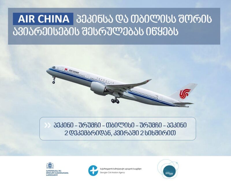 Авиакомпания Air China вышла на грузинский рынок в декабре 2024 года. На сегодняшний день компания выполняет рейсы между Тбилиси и Урумчи два раза в неделю и за 10 месяцев текущего года перевезла 25 035 пассажиров.