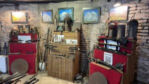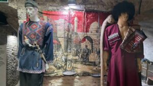 Не просто экспозиция, но коллекция, собранная энтузиастом, и одновременно контактный музей, где все экспонаты можно трогать – такое нечасто встретишь! Экскурсовод Давид (сам он гордо называет себя этно-гидом) создал этот музей семь лет назад, разместив в подвалах караван-сарая свою коллекцию предметов старины. Я с ним делал онлайн-интервью в период ковида 2020 года. Чего только нет в старинном помещении со сводами – образцы одежды (реплики и исторические экземпляры), средневековое оружие, бронза, которой несколько тысяч лет – все эти экспонаты Давид собирал по всей стране. Всю одежду можно примерить и сфотографироваться – в подвалах XV века стоит селфи-лампа. Давид рассказывает, что эта услуга пользуется особенной популярностью у туристов из Азии.