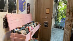 При входе есть стенд, где любое издание стоит 5 лари, а также полка, где книги можно взять бесплатно в любом количестве. И это не раздел с макулатурой, а то, что хочется унести домой и прямо сейчас начать читать. Много русской классики – Пушкин, Тургенев, Толстой, есть литературоведческие сочинения Тынянова и Андроникова, перестроечные издания вроде «Ночевала тучка золотая» Приставкина о сталинской депортации народов. Есть романы Стендаля, Дюма, Дрюона. Грузинская классика на русском языке. Или вот еще находка – мемуары Александра Коржакова (начальника охраны Ельцина). В общем, ненулевой шанс зависнуть надолго и уйти не с пустыми руками. А потом, когда прочитаете, книги можно вернуть, чтобы их смог прочесть кто-то другой (но можно и оставить у себя навсегда). Кстати, магазин принимает в дар любые книги.