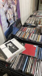 Здесь можно найти пластинки с детскими сказками (возможно, «Айболита» когда-то ставили вам перед сном – 20 лари). Можно купить Аллу Пугачеву и группу «Рецитал» (стоимость 30 лари, и кстати, оцените Аллу Борисовну на фоне пейзажей, отсылающих к «Моне Лизе». Есть лучшие хиты Боба Дилана (30 лари), есть сборник рождественских хитов (скоро будет актуально). Еще продается такое, раритеное – ансамбль «КУИН» из Великобритании (40 лари). А вот и новенькое – альбом Сабрины Карпентер со скандальной сексуализированной обложкой (140 лари). Ценителям компакт-дисков тоже есть чем поживиться: средняя цена – 30 лари.