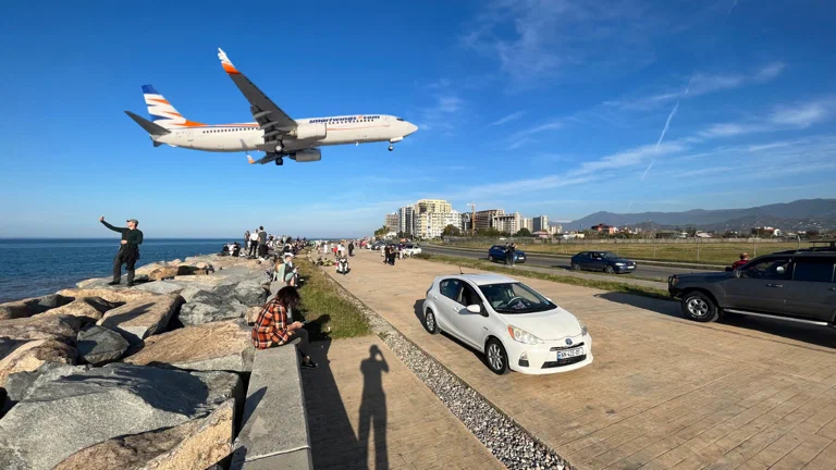 Сразу оговорюсь – конечно, фанаты наблюдений за самолетами и жители Аджарии хорошо знают эту локацию. Но для остальных она может стать открытием. Всего в пяти километрах от центра Батуми находится одно из самых необычных мест на всем побережье – площадка для плейнспоттинга. Здесь можно увидеть, как лайнеры пролетают буквально над головой – на высоте 15–20 метров, перед тем, как коснуться взлетно-посадочной полосы у самого моря.