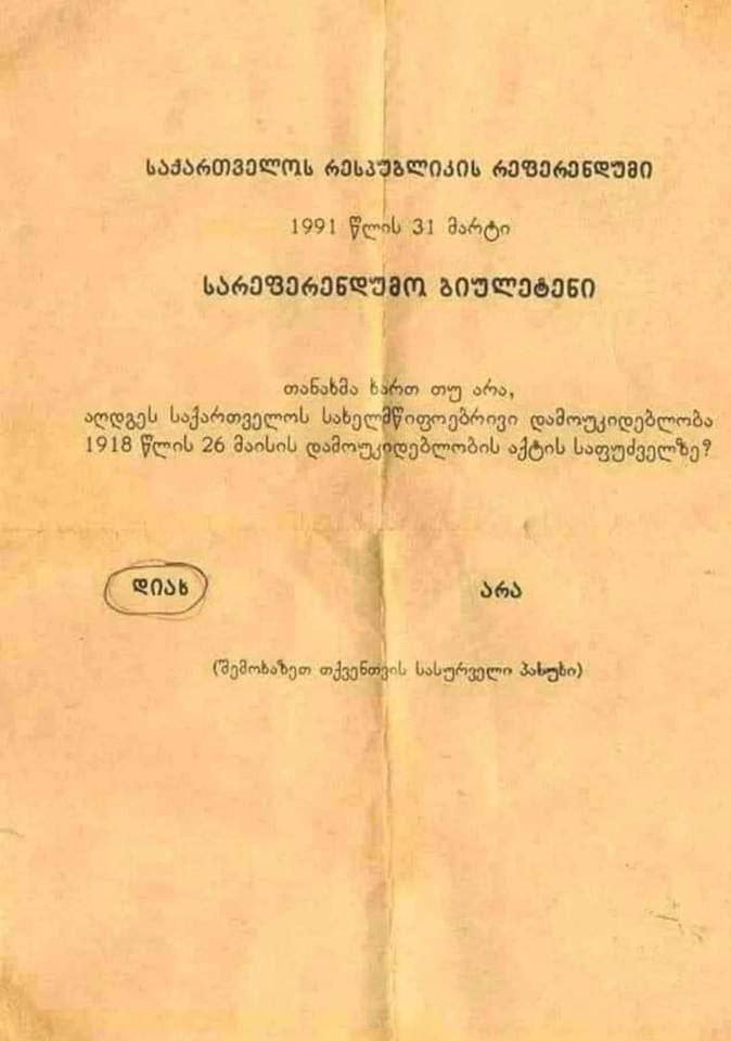 “Согласны ли вы с тем, что государственная независимость Грузии должна быть восстановлена в соответствии с законом о