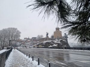 Ну а мы, давайте полюбуемся прекрасным снежным видом грузинской столицы. Такое в Тбилиси и Батуми, происходит примерно раз в три года.