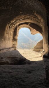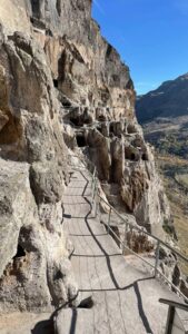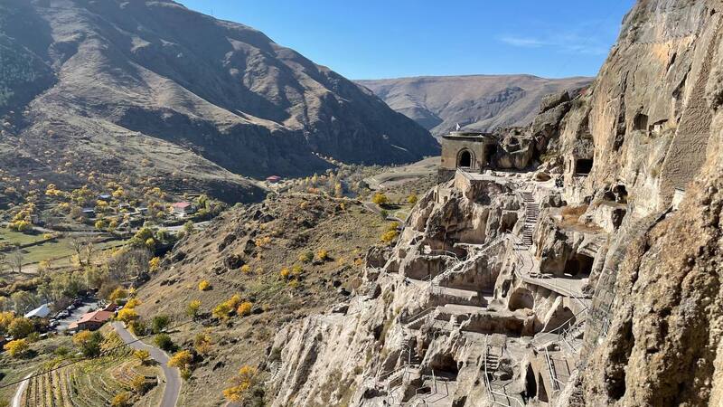 Это одна из топовых достопримечательностей страны – огромный комплекс, высеченный в скале, с монашескими кельями, кладовыми, трапезными, храмами и подземными ходами. Вардзия моложе популярного Уплисцихе, но значительно больше по площади. Пещеры города уходят на 50 метров вглубь скалы и поднимаются вверх на высоту до тринадцати уровней – если вы неравнодушны к таким локациям, запланируйте в Вардзии как минимум 2-3 часа (чтобы потом еще час отмокать в горячих источниках неподалеку). Ну и это, конечно, путешествие из Тбилиси на выходных с ночевкой: одним днем будет тяжеловато.