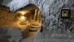 Современный вид Вардзии – результат землетрясения 1283 года. Подземные толчки обрушили внешний пласт породы толщиной около 15 метров, пострадало до двух третей комплекса, и город лишился своей оборонительной роли. В XVI веке Вардзия пережила набеги персидских и османских войск. C этим связана ее самая трагическая история: в главном храме Успения Пресвятой Богородицы османы заживо сожгли укрывавшихся там монахов. Потом в нем зимовали турецкие пастухи, и слой копоти продолжал покрывать фрески. Монашество возобновилось только в XIX веке после того, как Российская империя отвоевала эти земли у Турции. Кстати, сейчас в скалах обустроены кельи современных монахов, так что Вардзия продолжает жить не только туристической жизнью.