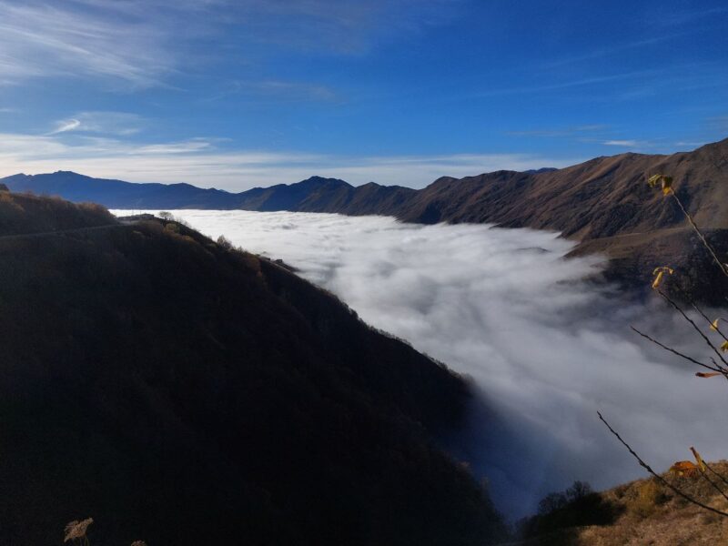 Облака спустились ниже Арки дружбы народов и почти в самый низ ущелья. Тех, кто ездит в Гомис Мта, подобным не удивить, но для Гудаури точно необычное явление.