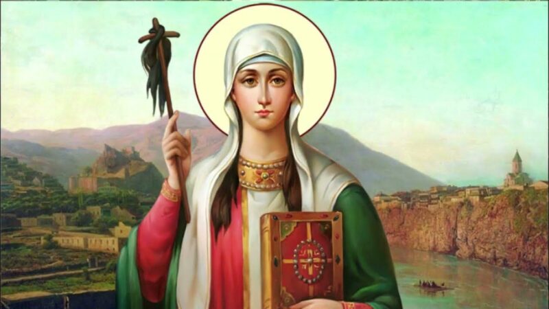 Предание гласит, что святая Нино жила в Иерусалиме в конце 3 — начале 4 веков. Во сне ей явилась Пресвятая Богородица, вручила крест из виноградных ветвей и благословила на просвещение язычников Иверии. В 319 году святая Нино прибыла в Грузию, начав подвижническую жизнь и неся слово Божие. В 326 году христианство было объявлено государственной религией Грузии.