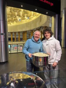 Популярная сеть кинотеатров “Cavea Cinemas” предложила зрителям в этот вечер принести собственную тару для попкорна, чтобы туда его насыпать.