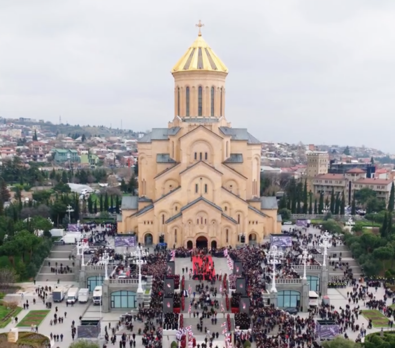 Процессия с гробом Католикоса-Патриарха всея Грузии Илии II направляется к Сионскому собору, где всё подготовлено к захоронению.