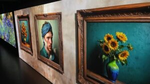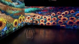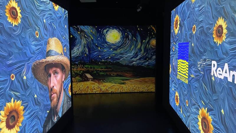 Как говорят искусствоведы, ничто не заменит общение с подлинниками, но до подлинников Ван Гога из Тбилиси будет далековато. Эта экспозиция – для фанатов цифрового искусства и тех, кого завораживают возможности искусственного интеллекта. Сделано все, чтобы посетители могли погрузиться во вселенную нидерландского художника – в залах темно, стоят удобные кресла, включена медитативная музыка. Стены, они же полотна, можно трогать. Еще вариант – присесть за столик и попытаться вообразить себя внутри работ Ван Гога, если у вас активное воображение, может получиться. Пространство определенно понравится детям, особенно тем, кому в картинные галереи пока может быть рановато. Изображения занимают пространство от пола до потолка в несколько метров, отражаются от стеклянных стен, а сам Ван Гог вам буквально подмигивает (хотя кого-то, вероятно, это может и покоробить).