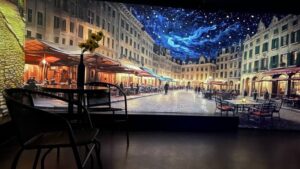Проект сложный с технической точки зрения. Самым трудным было 3D-моделирование, чтобы перенести изображение на стены. Поэтому нам понадобились мощные, дорогостоящие компьютеры и 120 проекторов